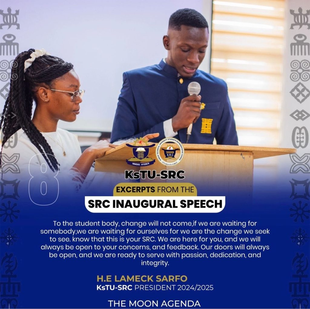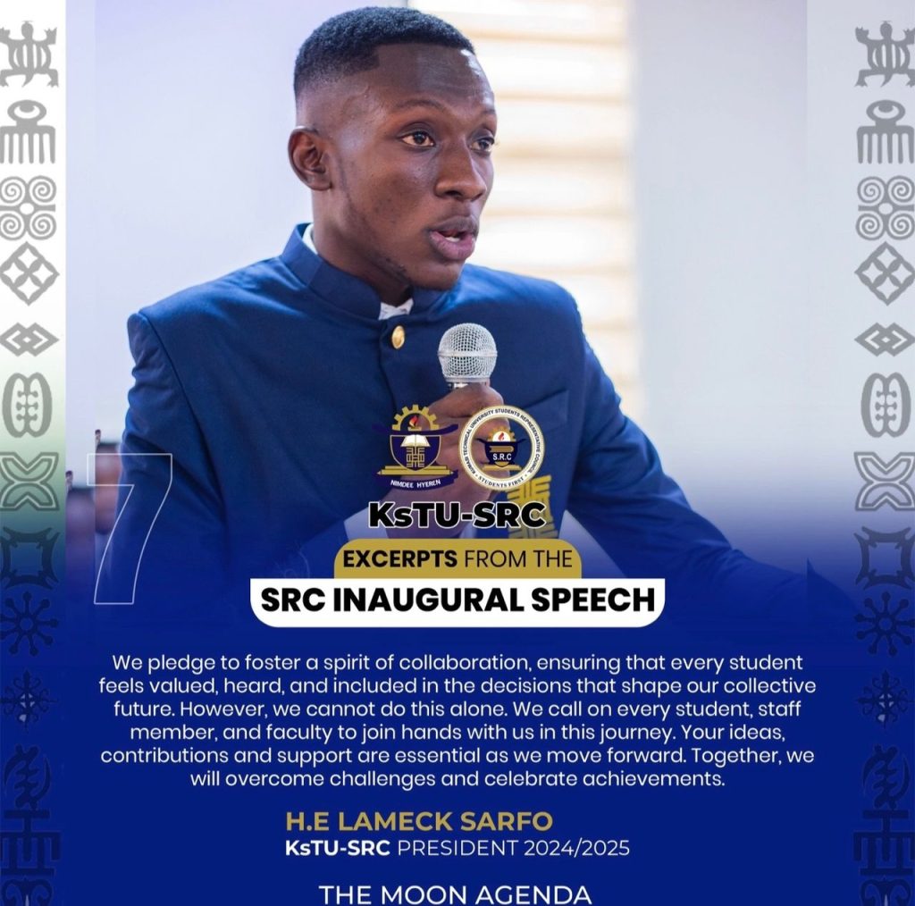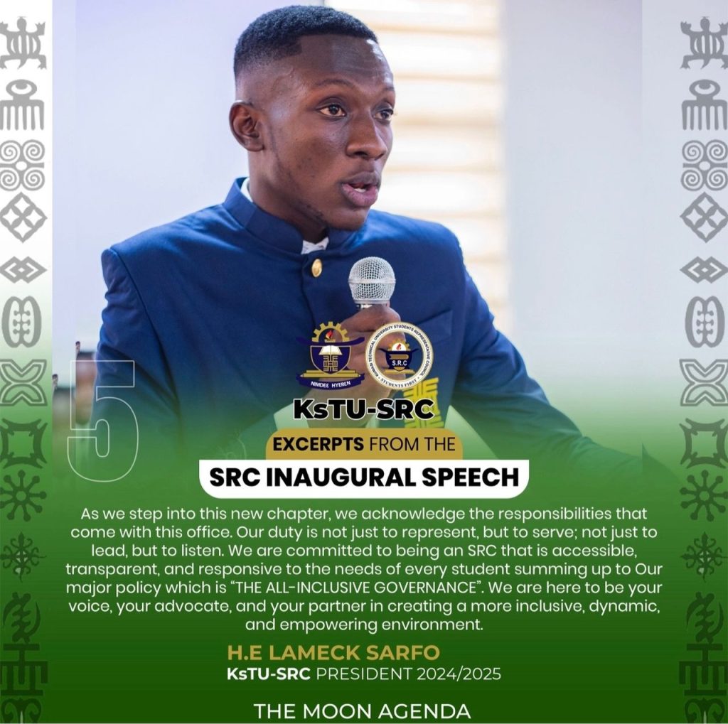 During his term, Sarfo’s administration, branded as “The Moon Agenda,” aims to prioritize inclusivity, transparency, and student engagement.