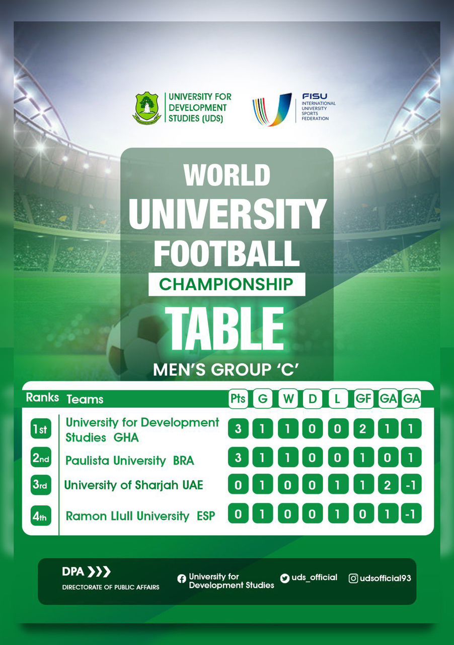Dalian, China – The University for Development Studies (UDS) has made Ghana proud by topping Group C at the ongoing 2025 FISU University World Cup in Dalian, China. The Ghanaian side kicked off their campaign in remarkable fashion, setting the pace for an exciting tournament.